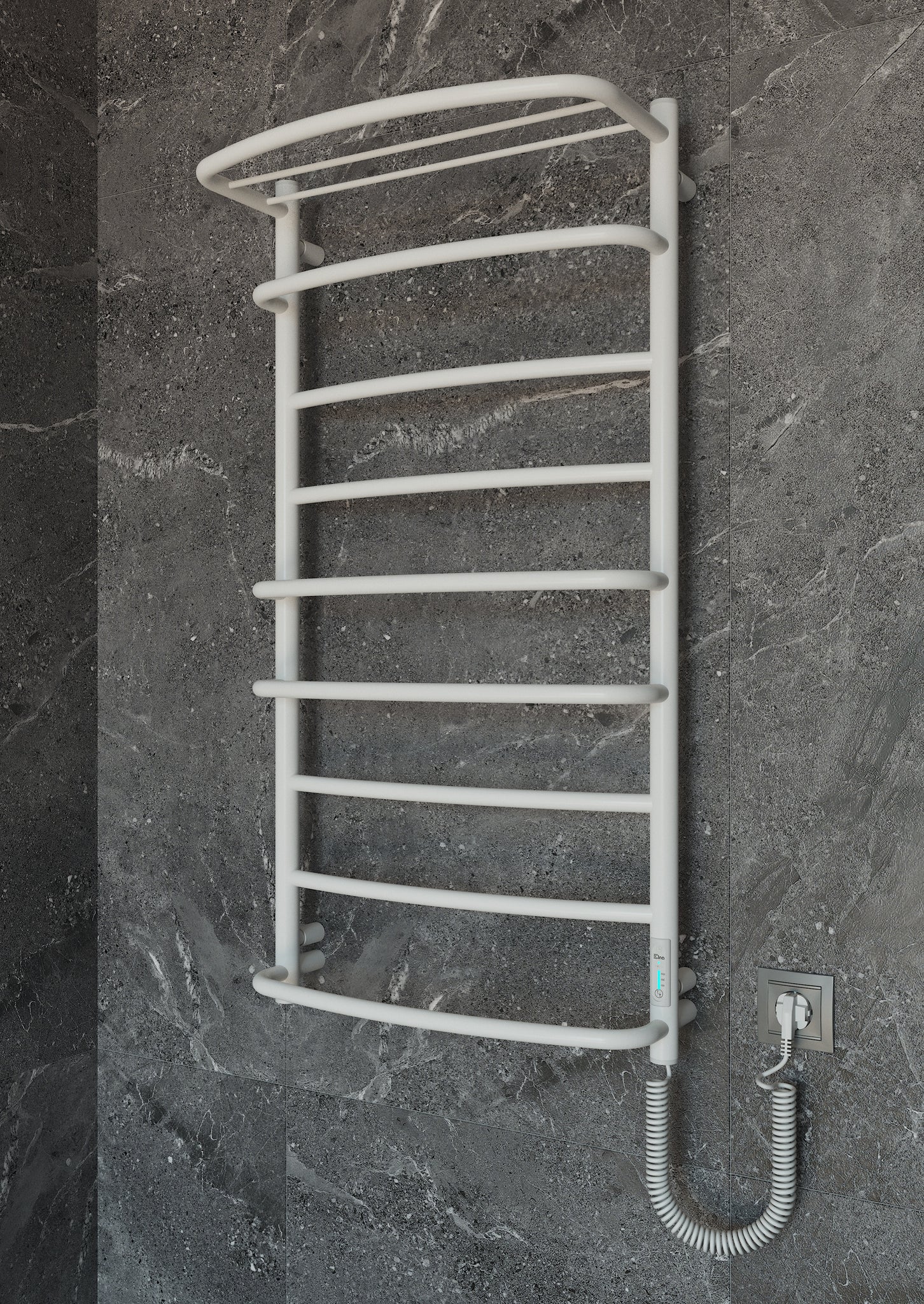Siguiendo las tendencias mundiales en diseño de interiores de baños, le presentamos el radiador toallero eléctrico con estante con acabado en blanco. Decisión de diseño perfecta para los clientes que están totalmente enamorados de los colores minimalistas clásicos y las formas concisas del metal.