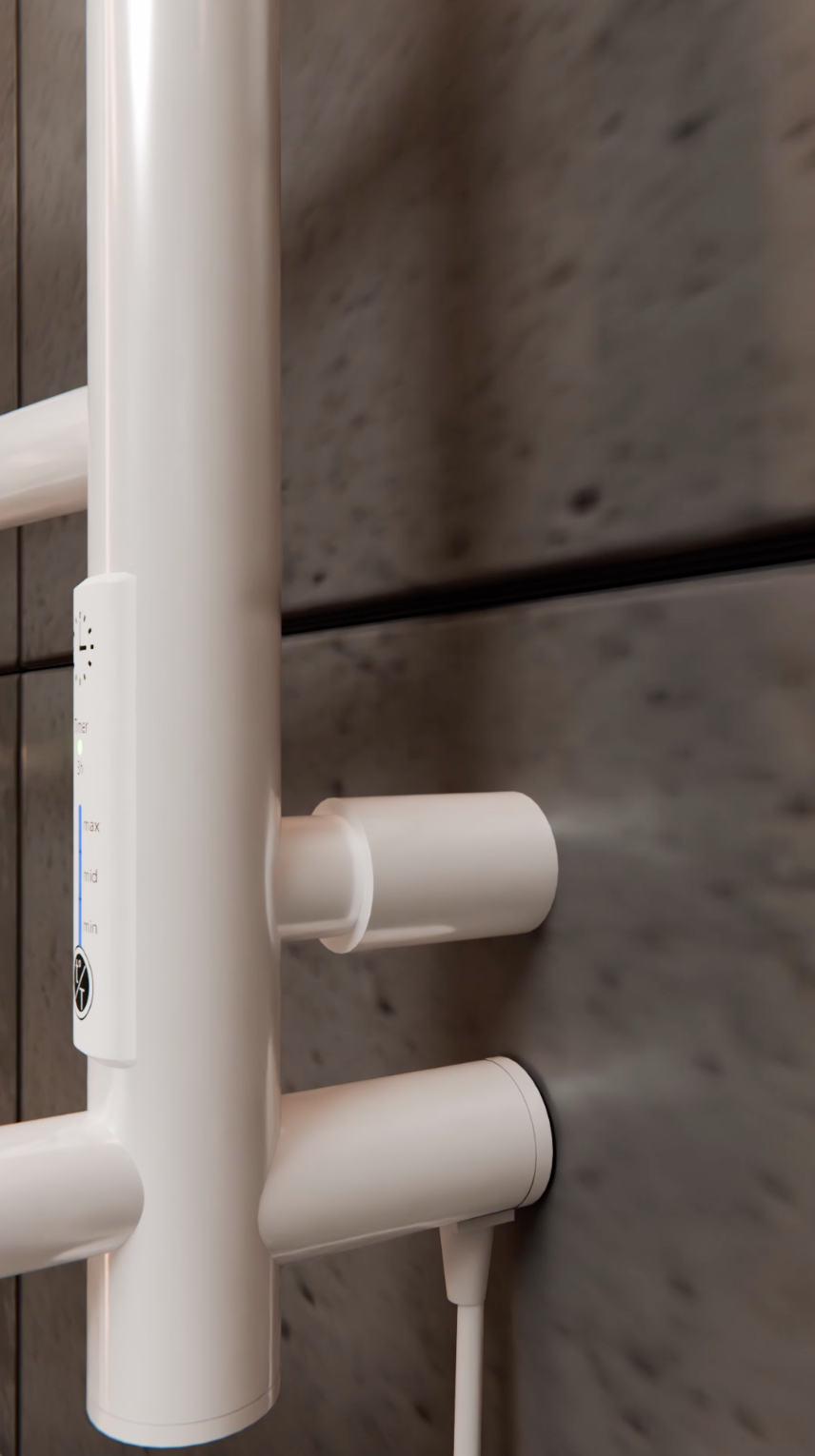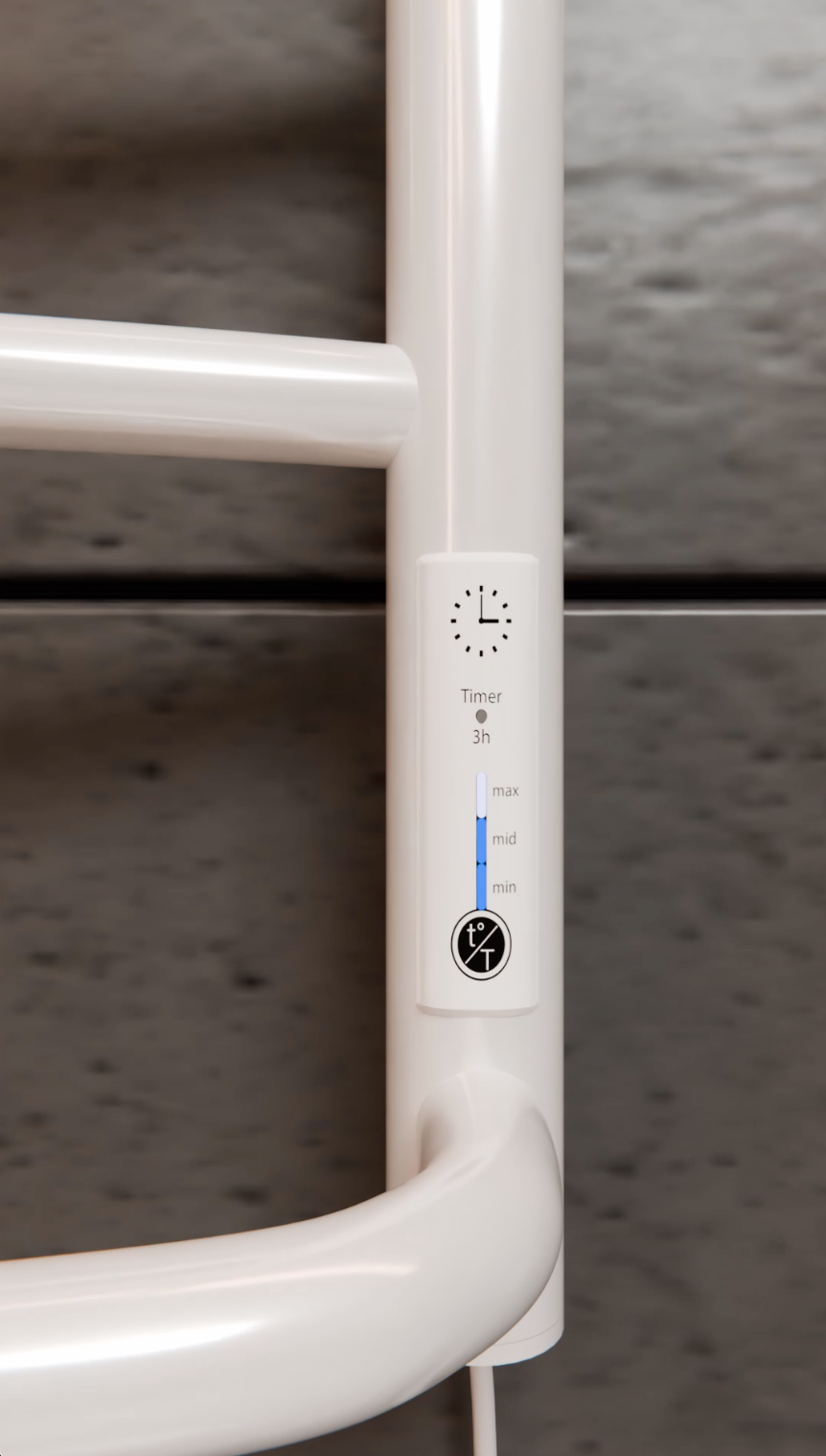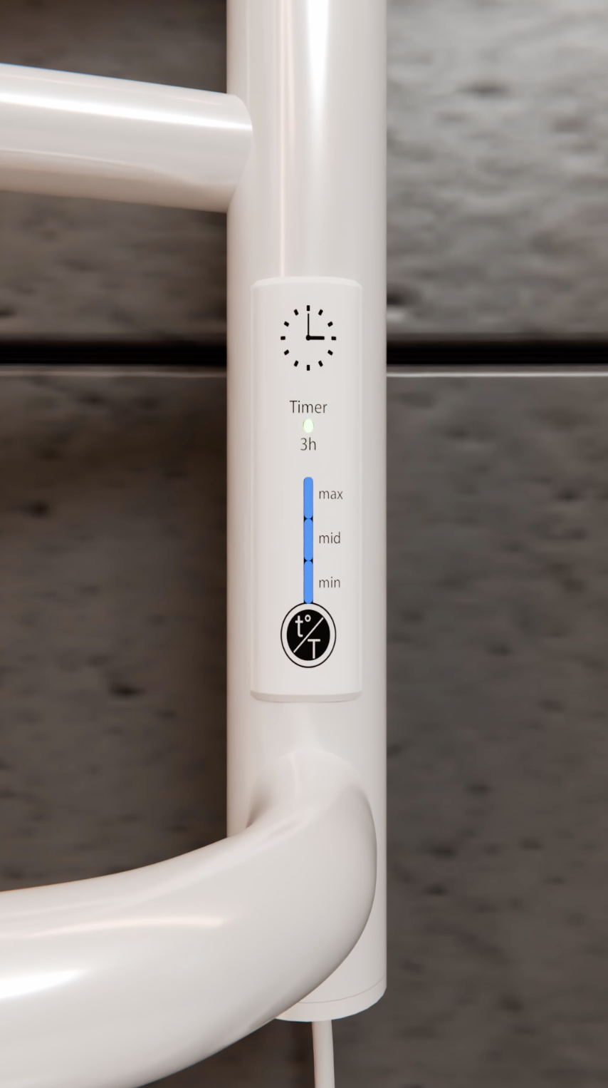 El toallero eléctrico incluye un regulador de temperatura con tres modos de calor ajustables y una función de temporizador incorporada. En el modo TIMER 3H, la unidad se apaga automáticamente después de tres horas de operación para mayor seguridad y ahorro de energía. Altamente eficiente energéticamente, este dispositivo eléctrico para baño consume una electricidad mínima y puede reducir el uso mensual de energía hasta en un 70%.