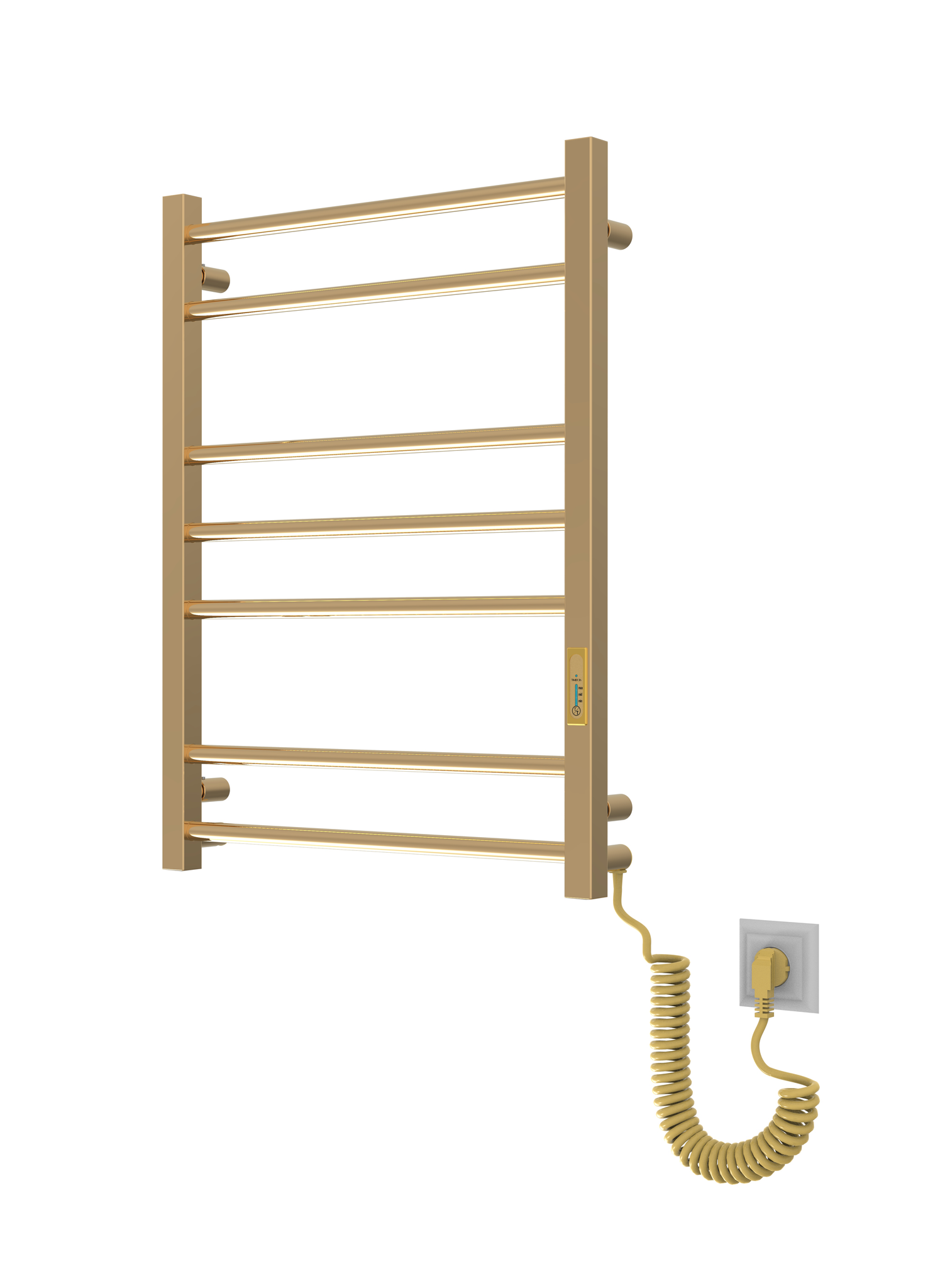 Siguiendo las tendencias mundiales en diseño de interiores para baño, les presentamos este toallero eléctrico con acabado en dorado pulido y efecto espejo. Es la solución de diseño perfecta para los clientes amantes de las cálidas tonalidades del dorado y las formas concisas del metal. El toallero está fabricado en acero inoxidable utilizando el método PVD al vacío. Las cualidades funcionales y estéticas de su revestimiento de nitruro de titanio garantizan una durabilidad de varias décadas. La superficie perfectamente espejada del dispositivo y su agradable tono dorado aterciopelado realzarán la lujosa atmósfera del baño.