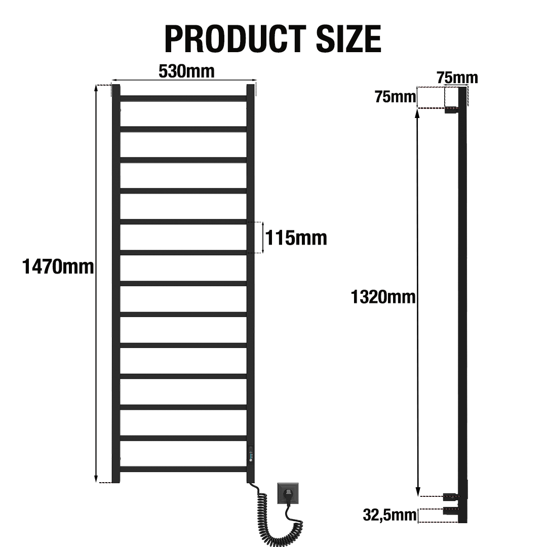 Siguiendo las tendencias mundiales en diseño de interiores de baños, le presentamos un toallero eléctrico con acabado negro mate. Una decisión de diseño perfecta para los clientes totalmente enamorados de los colores industriales y las formas concisas del metal.