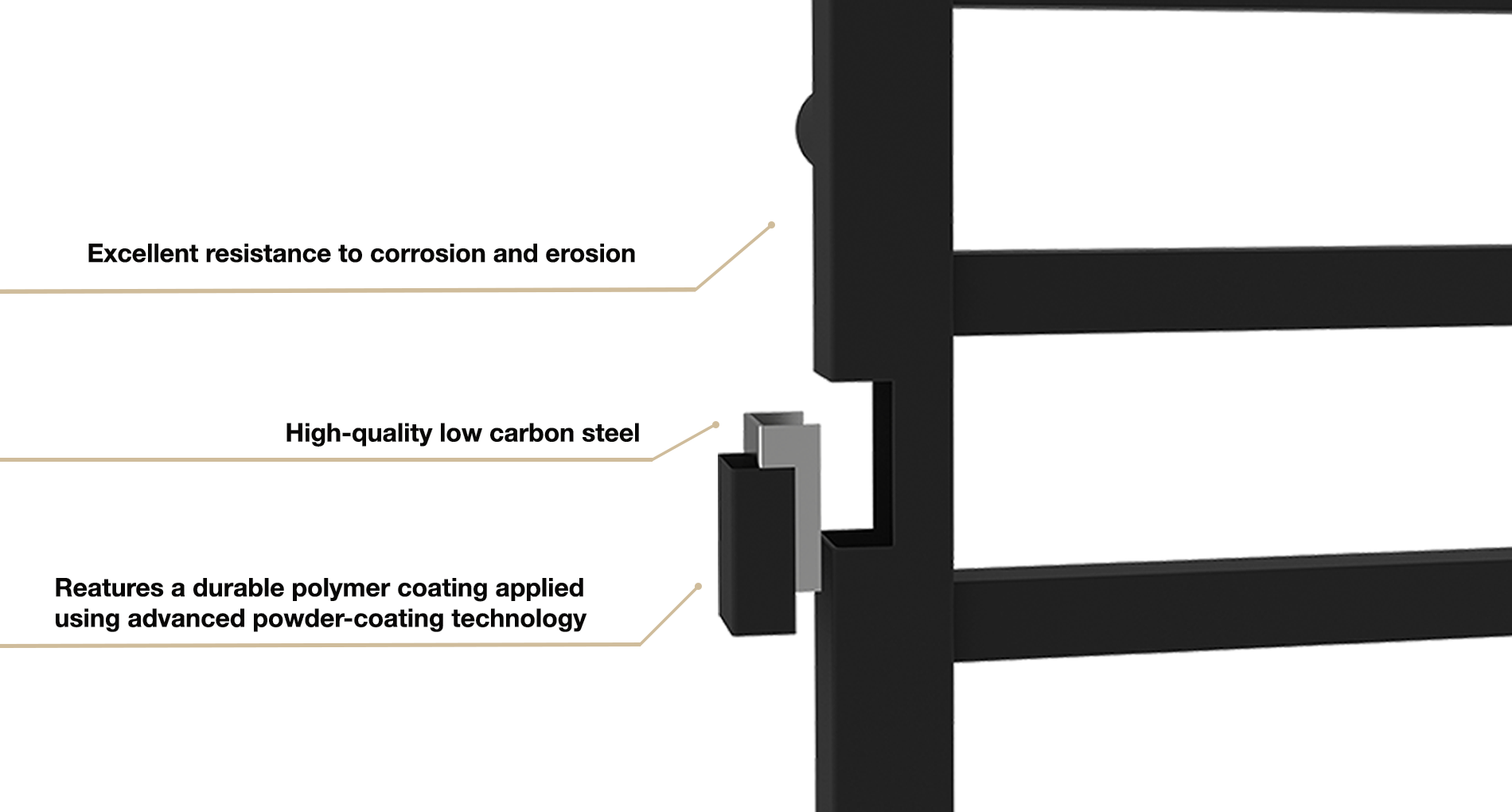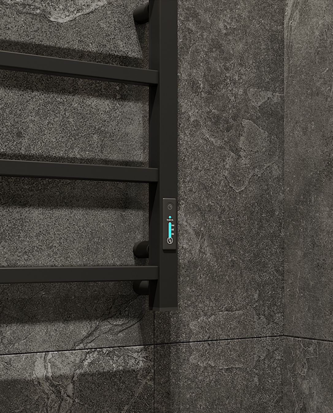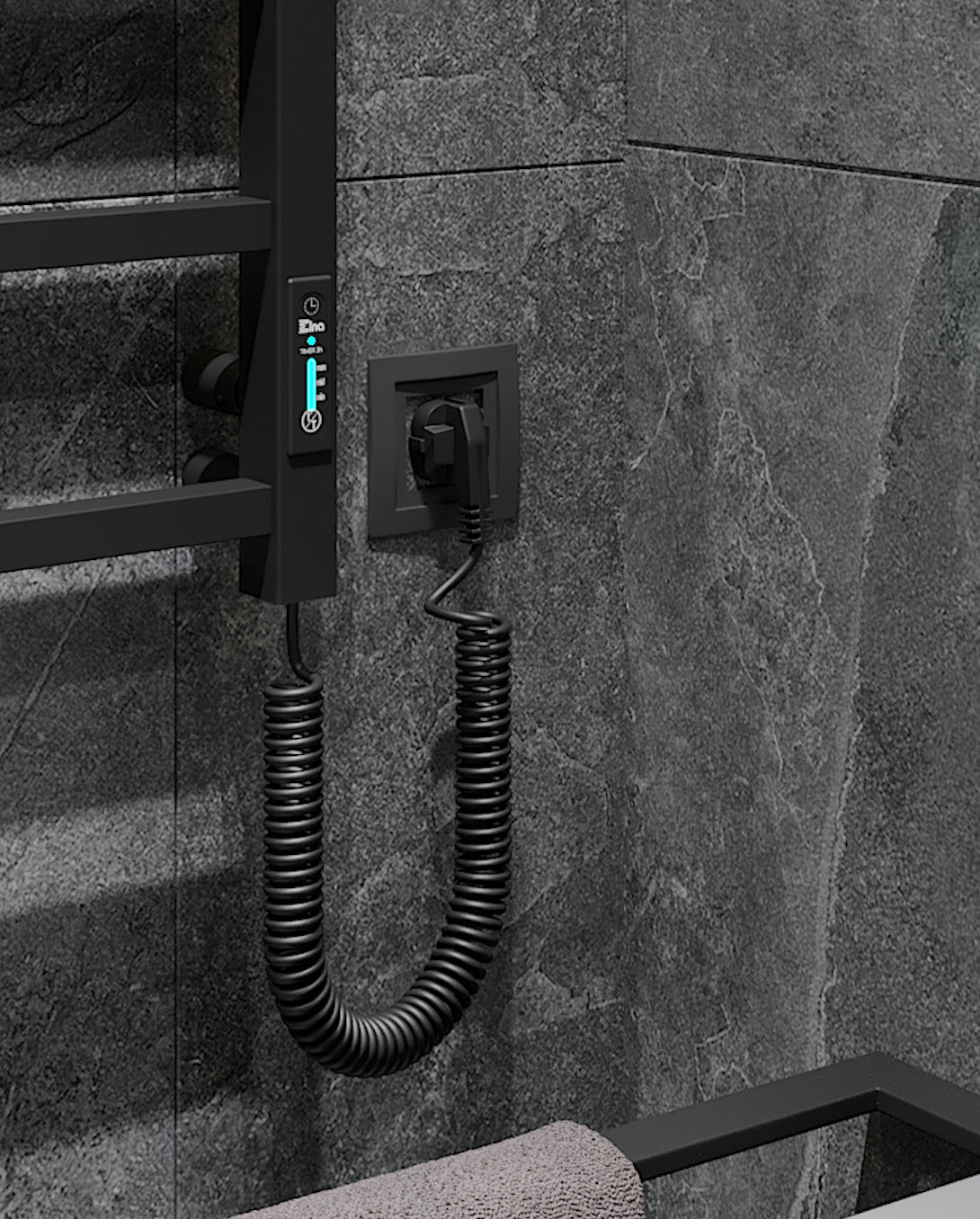 Siguiendo las tendencias mundiales en diseño de interiores de baños, le presentamos un toallero eléctrico con acabado negro mate. Una decisión de diseño perfecta para los clientes totalmente enamorados de los colores industriales y las formas concisas del metal.