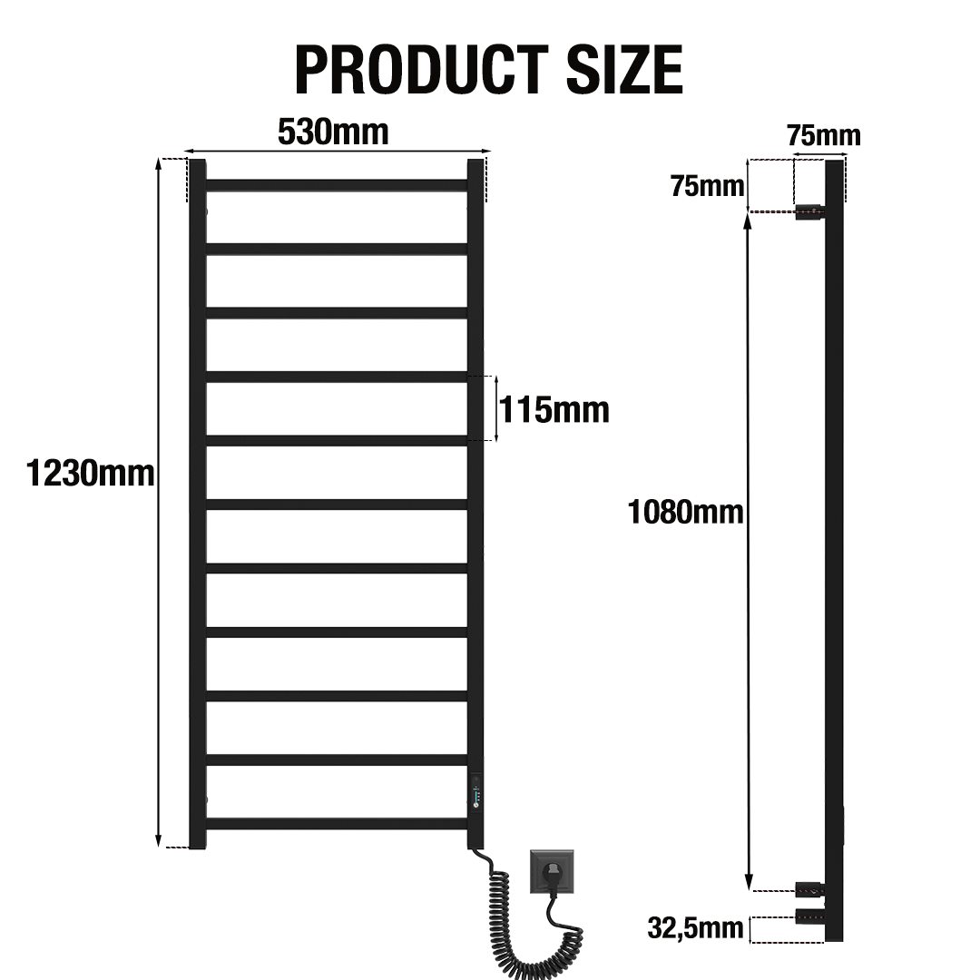 Siguiendo las tendencias mundiales en diseño de interiores de baños, le presentamos un toallero eléctrico con acabado negro mate. Una decisión de diseño perfecta para los clientes totalmente enamorados de los colores industriales y las formas concisas del metal.