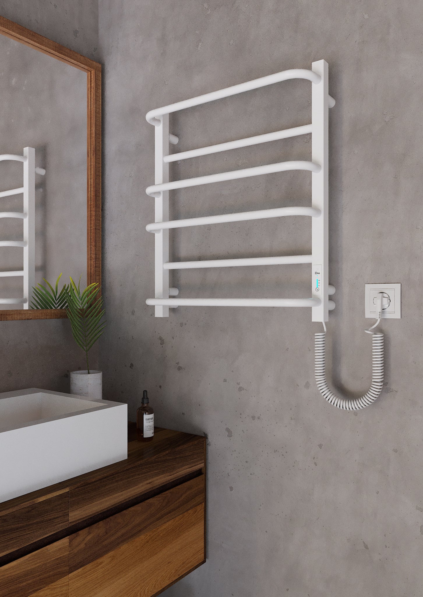 Este toallero eléctrico está diseñado para la comodidad y la facilidad de uso. Puede conectarse en cualquier lugar con acceso a la electricidad. Con un sistema interno de cable seco, no requiere fluidos adicionales: basta con enchufarlo y estará listo para usar. El dispositivo se calienta rápidamente, alcanzando su temperatura máxima en cuestión de minutos.
