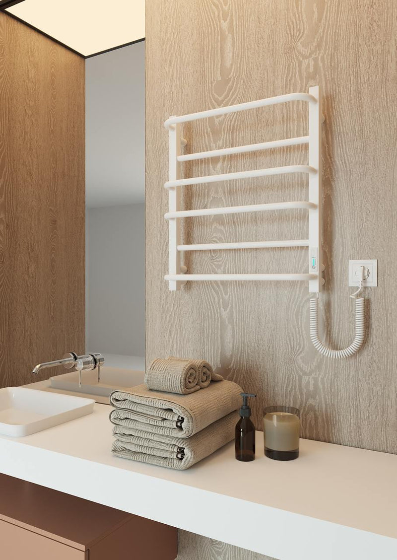 Siguiendo las tendencias mundiales en diseño de interiores de baño, le presentamos el toallero eléctrico con acabado en blanco. Una decisión de diseño perfecta para los clientes que están totalmente enamorados de los colores industriales y de las formas concisas del metal.