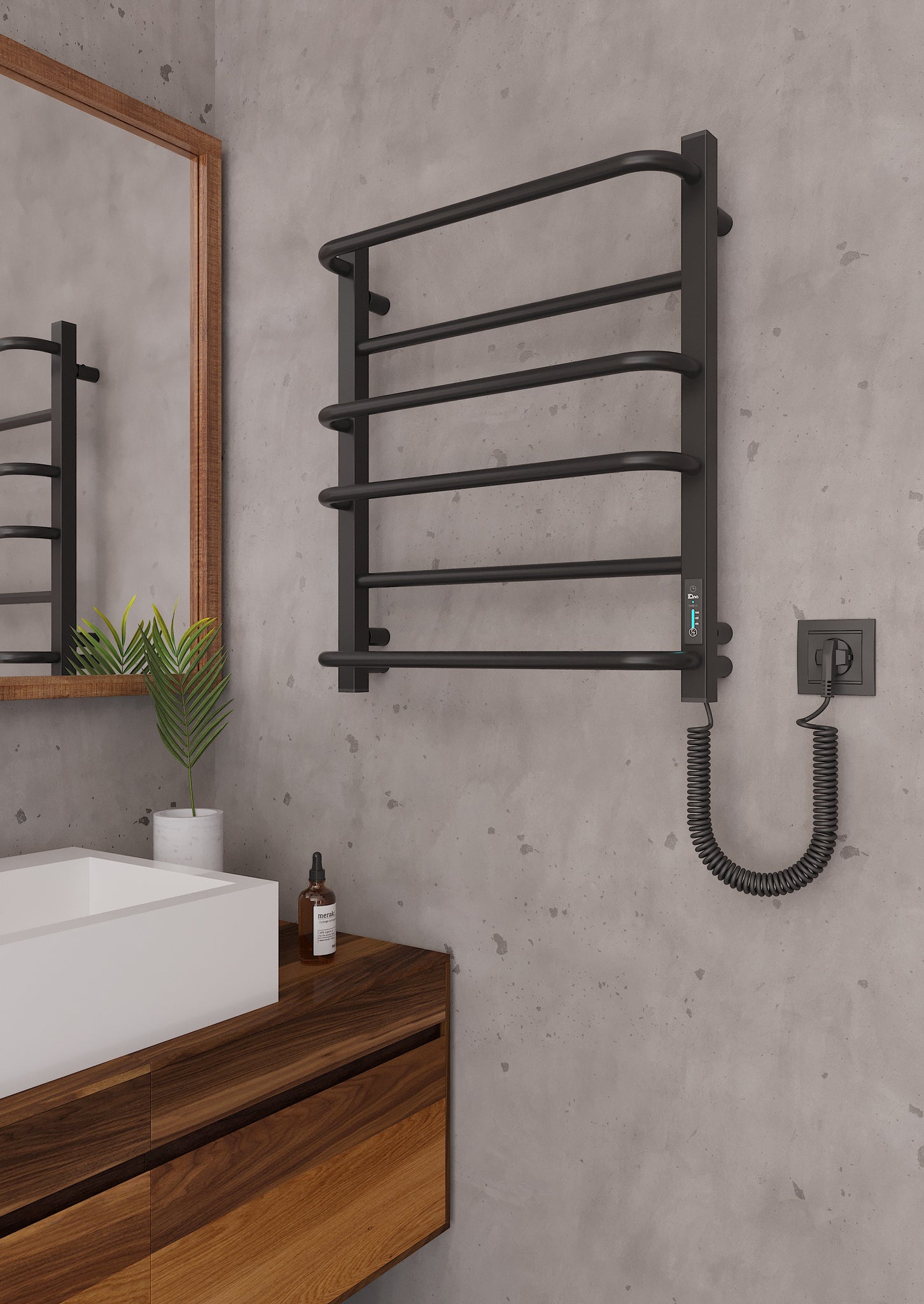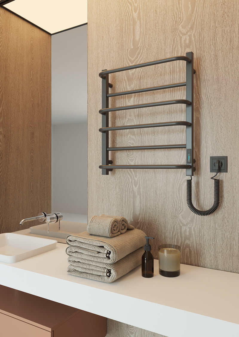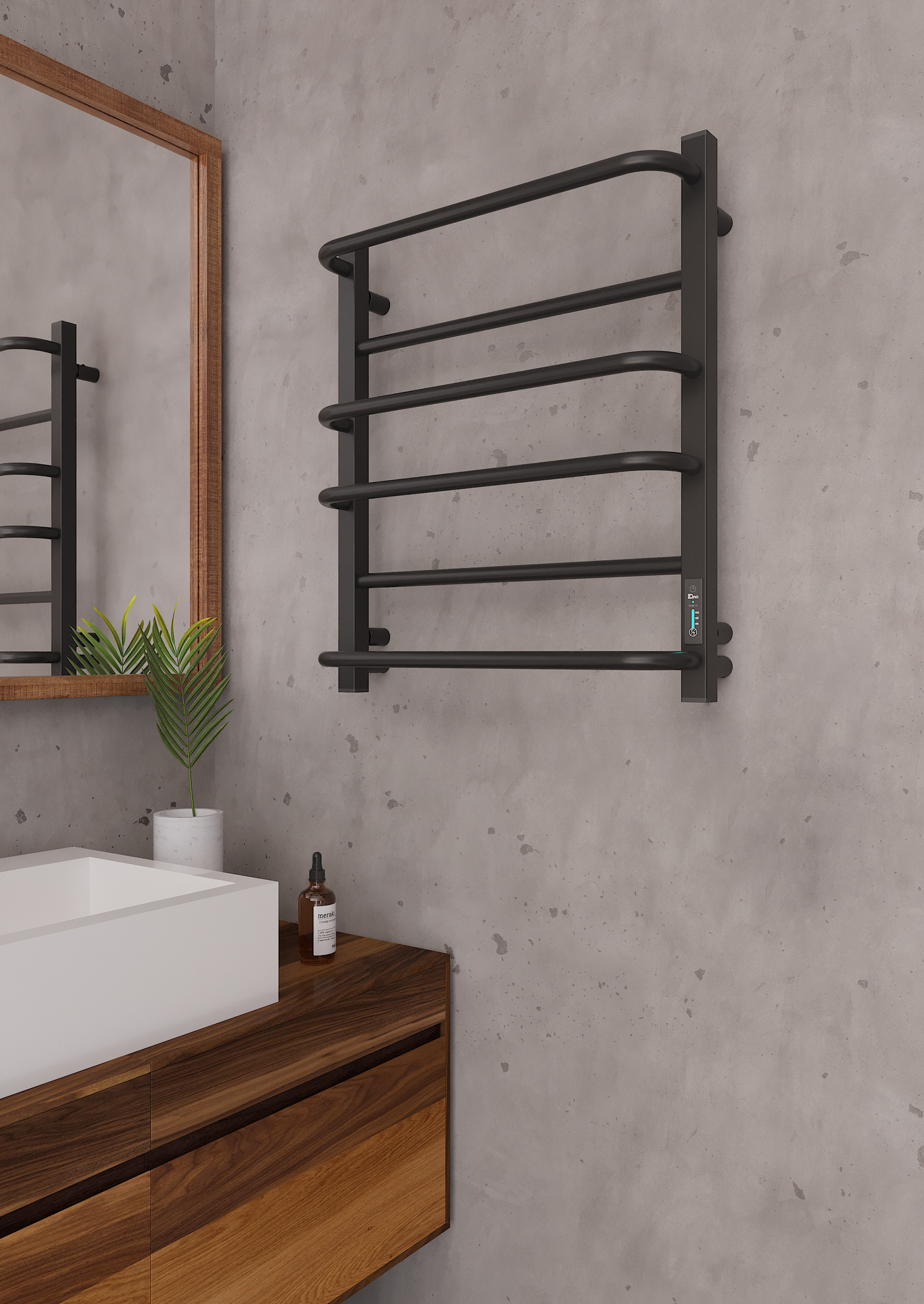 Siguiendo las tendencias mundiales en diseño de interiores de baño, le presentamos un toallero eléctrico con acabado negro mate. Una decisión de diseño perfecta para los clientes que están totalmente enamorados de los colores industriales y de las formas concisas del metal.