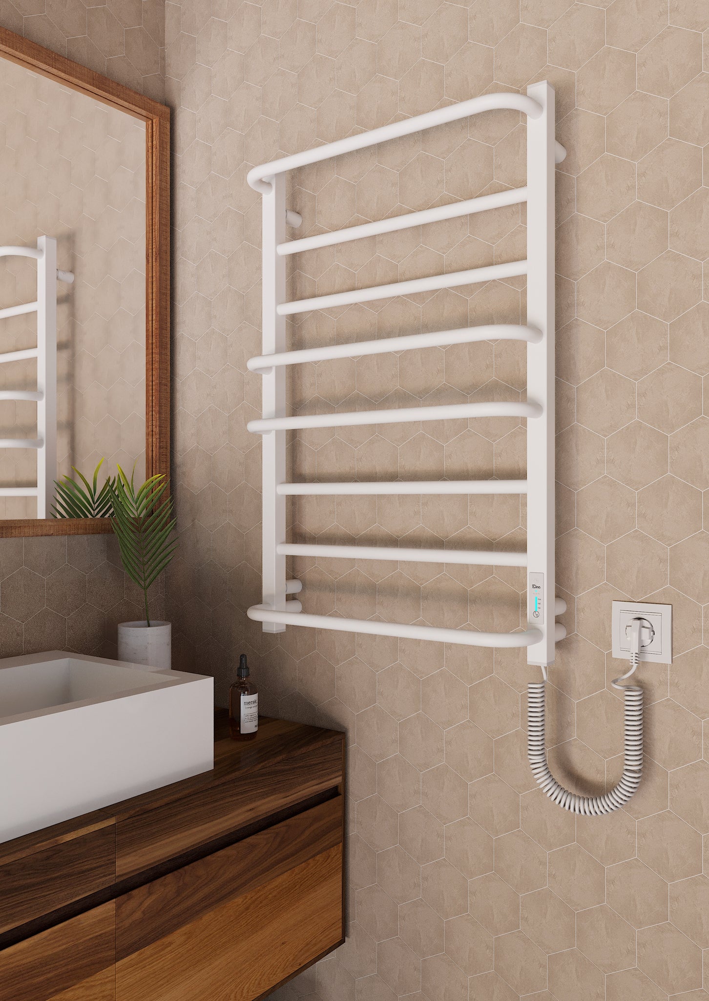 <p dir="ltr" style="line-height: 1.38; background-color: #ffffff; margin-top: 0.0pt; margin-bottom: 0.0pt;" id="docs-internal-guid-4b97fad7-7fff-883d-ffdd-11f7a6585db4"><span style="font-size: 12pt; font-family: Arial, sans-serif; color: rgb(58, 58, 58); background-color: transparent; font-variant-numeric: normal; font-variant-east-asian: normal; font-variant-alternates: normal; font-variant-position: normal; font-variant-emoji: normal; vertical-align: baseline; white-space-collapse: preserve;">Siguiendo las tendencias mundiales en diseño de interiores de baño, le presentamos el toallero eléctrico con acabado en blanco. Una decisión de diseño perfecta para los clientes que están totalmente enamorados de los colores industriales y de las formas concisas del metal.</span><span style="font-size: 13pt; font-family: Arial, sans-serif; color: rgb(58, 58, 58); background-color: transparent; font-variant-numeric: normal; font-variant-east-asian: normal; font-variant-alternates: normal; font-variant-position: normal; font-variant-emoji: normal; vertical-align: baseline; white-space-collapse: preserve;"> </span><span style="font-size: 13pt; font-family: Arial, sans-serif; color: rgb(58, 58, 58); background-color: transparent; font-variant-numeric: normal; font-variant-east-asian: normal; font-variant-alternates: normal; font-variant-position: normal; font-variant-emoji: normal; vertical-align: baseline; white-space-collapse: preserve;"><br></span><span style="font-size: 13pt; font-family: Arial, sans-serif; color: rgb(58, 58, 58); background-color: transparent; font-variant-numeric: normal; font-variant-east-asian: normal; font-variant-alternates: normal; font-variant-position: normal; font-variant-emoji: normal; vertical-align: baseline; white-space-collapse: preserve;"><br></span><span style="font-size: 12pt; font-family: Arial, sans-serif; color: rgb(58, 58, 58); background-color: transparent; font-variant-numeric: normal; font-variant-east-asian: normal; font-variant-alternates: normal; font-variant-position: normal; font-variant-emoji: normal; vertical-align: baseline; white-space-collapse: preserve;">Este toallero eléctrico está diseñado para la comodidad y la facilidad de uso. Puede conectarse en cualquier lugar con acceso a la electricidad. Con un sistema interno de cable seco, </span><span style="font-size: 12pt; font-family: Arial, sans-serif; color: rgb(58, 58, 58); background-color: transparent; font-weight: bold; font-variant-numeric: normal; font-variant-east-asian: normal; font-variant-alternates: normal; font-variant-position: normal; font-variant-emoji: normal; vertical-align: baseline; white-space-collapse: preserve;">no requiere fluidos adicionales: basta con enchufarlo y estará listo para usar</span><span style="font-size: 12pt; font-family: Arial, sans-serif; color: rgb(58, 58, 58); background-color: transparent; font-variant-numeric: normal; font-variant-east-asian: normal; font-variant-alternates: normal; font-variant-position: normal; font-variant-emoji: normal; vertical-align: baseline; white-space-collapse: preserve;">. El dispositivo se calienta rápidamente, alcanzando su temperatura máxima en cuestión de minutos.</span></p>