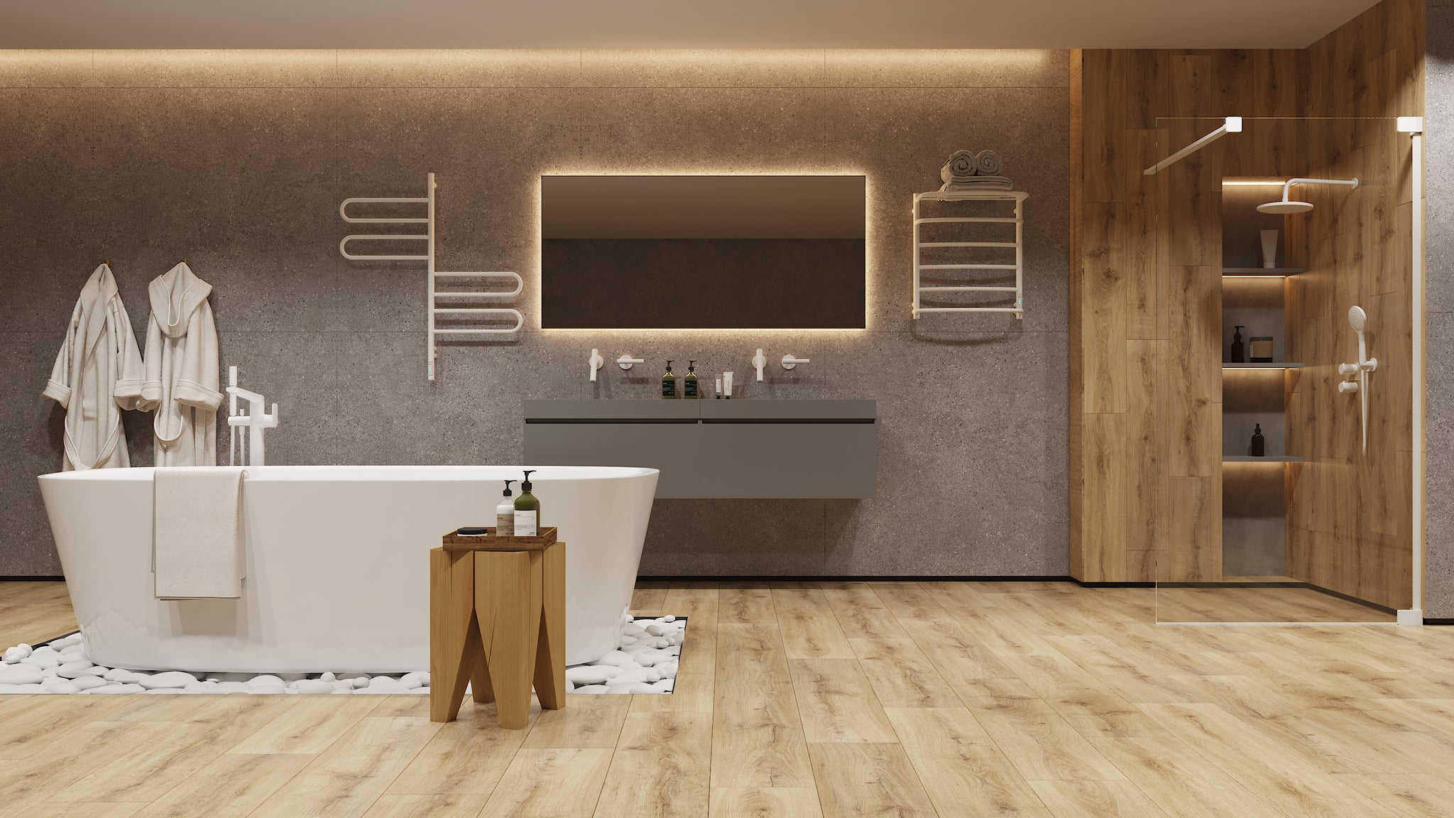 This electric towel rail is designed for convenience and ease of use. It can be connected anywhere with access to electricity. Featuring a dry internal cable system, it requires no additional fluids — simply plug it in, and it's ready to go. The device heats up quickly, reaching its maximum temperature within minutes.