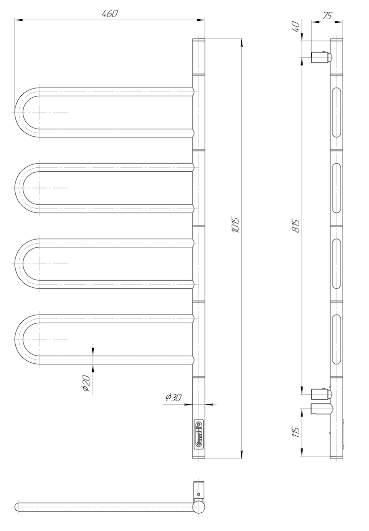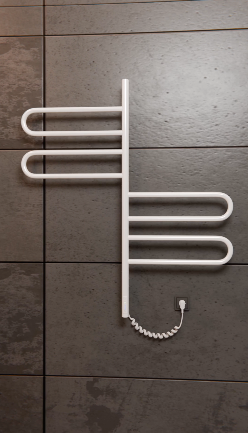 Este radiador toallero eléctrico para baño con acabado en blanco cuenta con cuatro barras giratorias, cada una de las cuales puede girar 180° independientemente de las otras. Decisión de diseño perfecta para clientes que están totalmente enamorados de los colores clásicos y las formas concisas del metal.