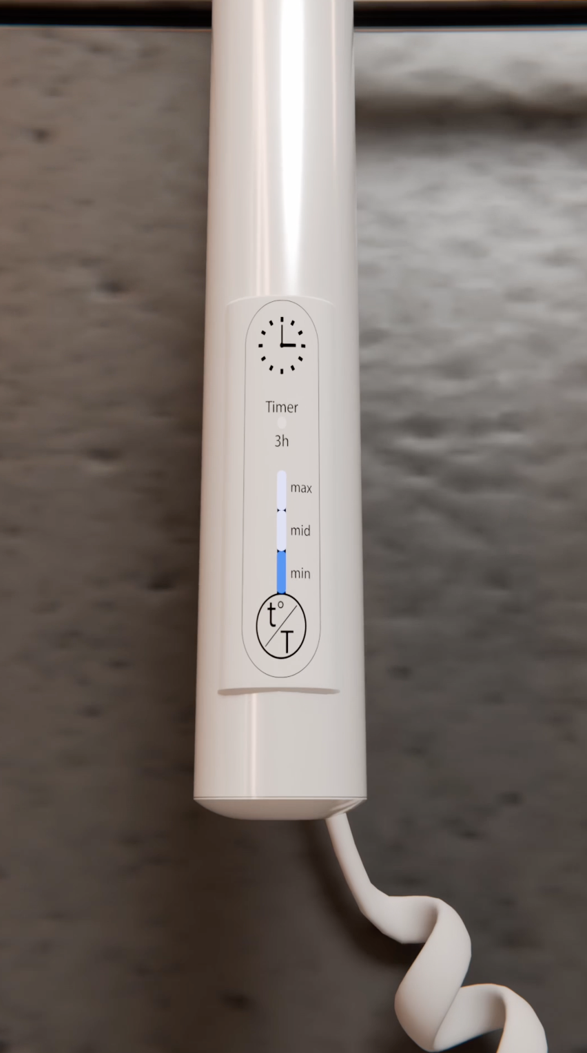 El toallero eléctrico incluye un regulador de temperatura con tres modos de calor ajustables y una función de temporizador incorporada. En el modo TIMER 3H, la unidad se apaga automáticamente después de tres horas de operación para mayor seguridad y ahorro de energía. Altamente eficiente energéticamente, este dispositivo eléctrico para baño consume una electricidad mínima y puede reducir el uso mensual de energía hasta en un 70%.
