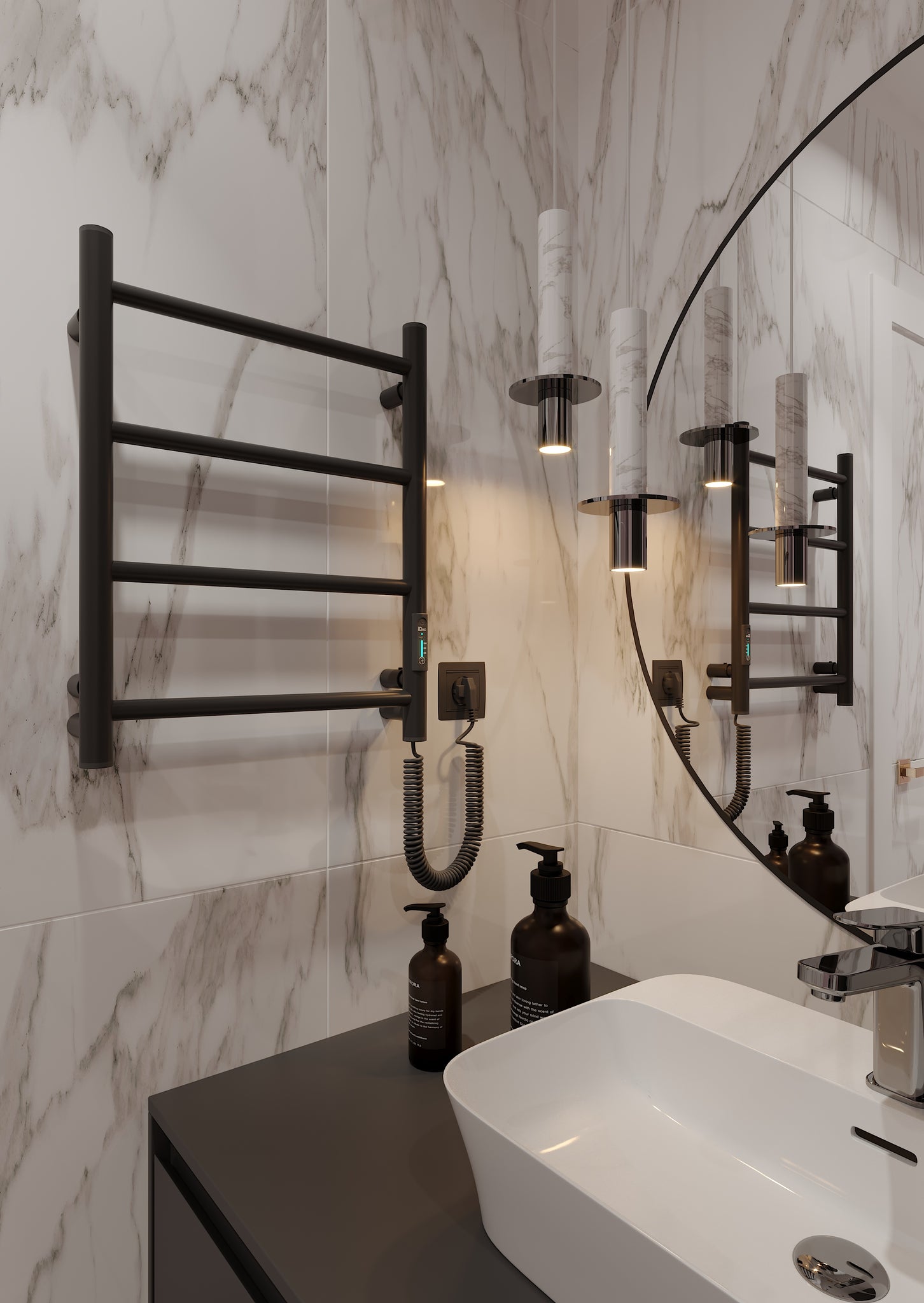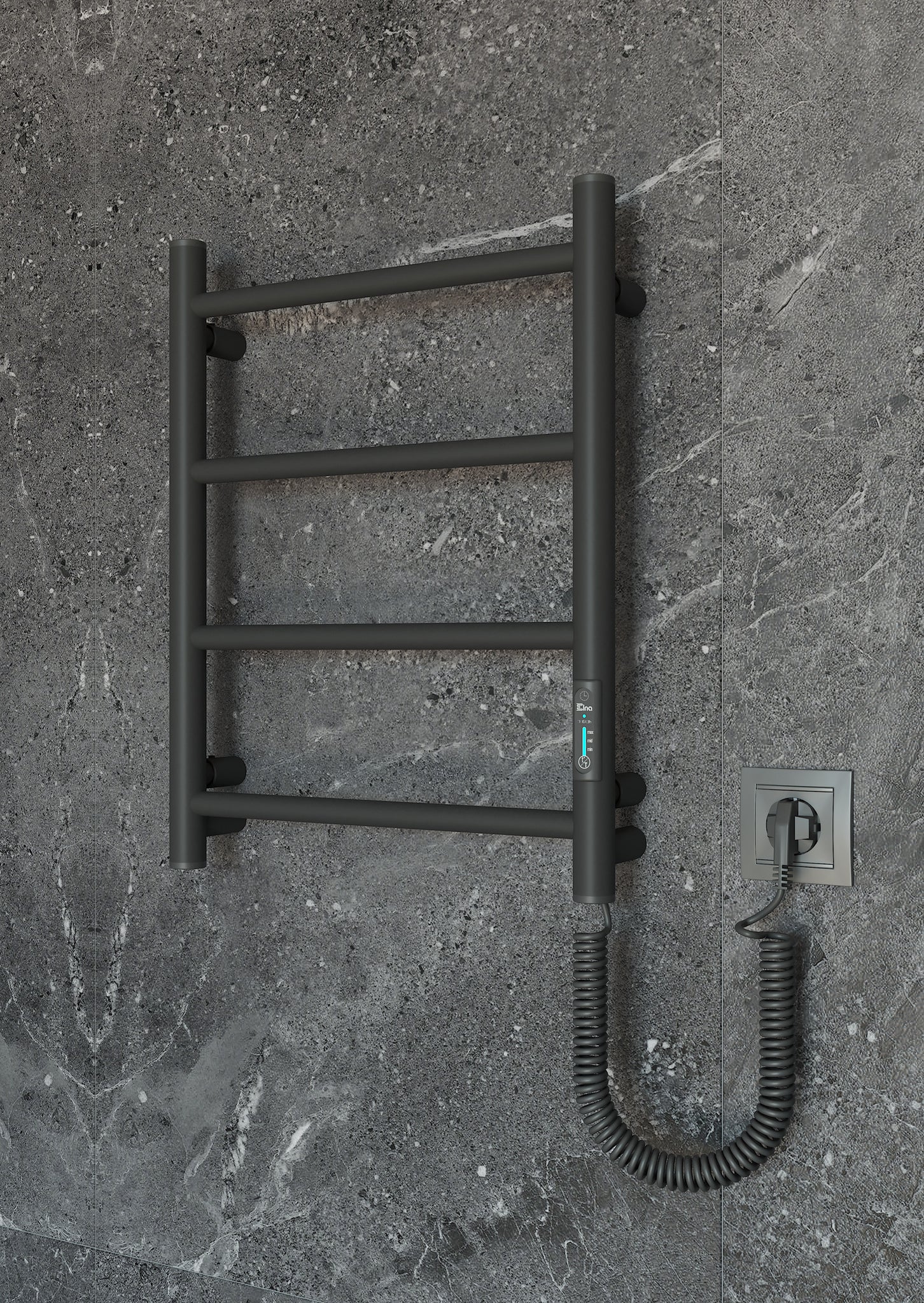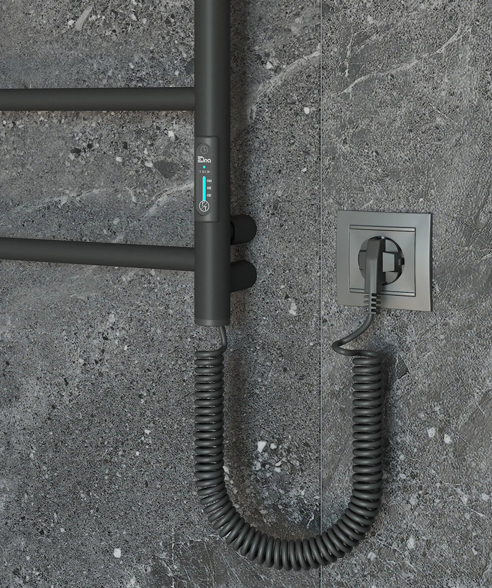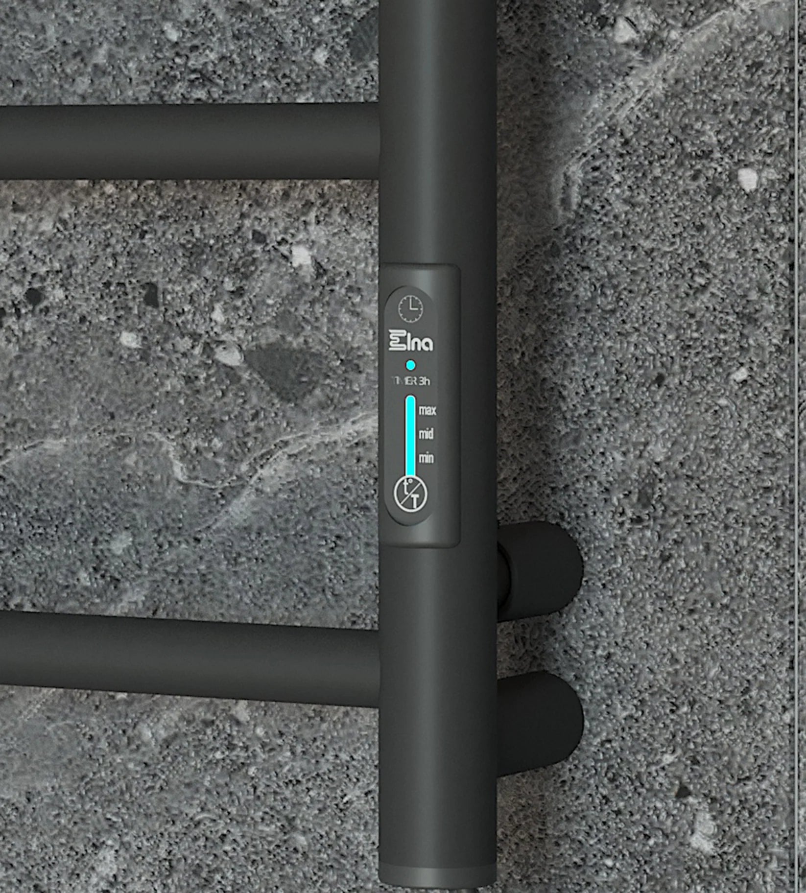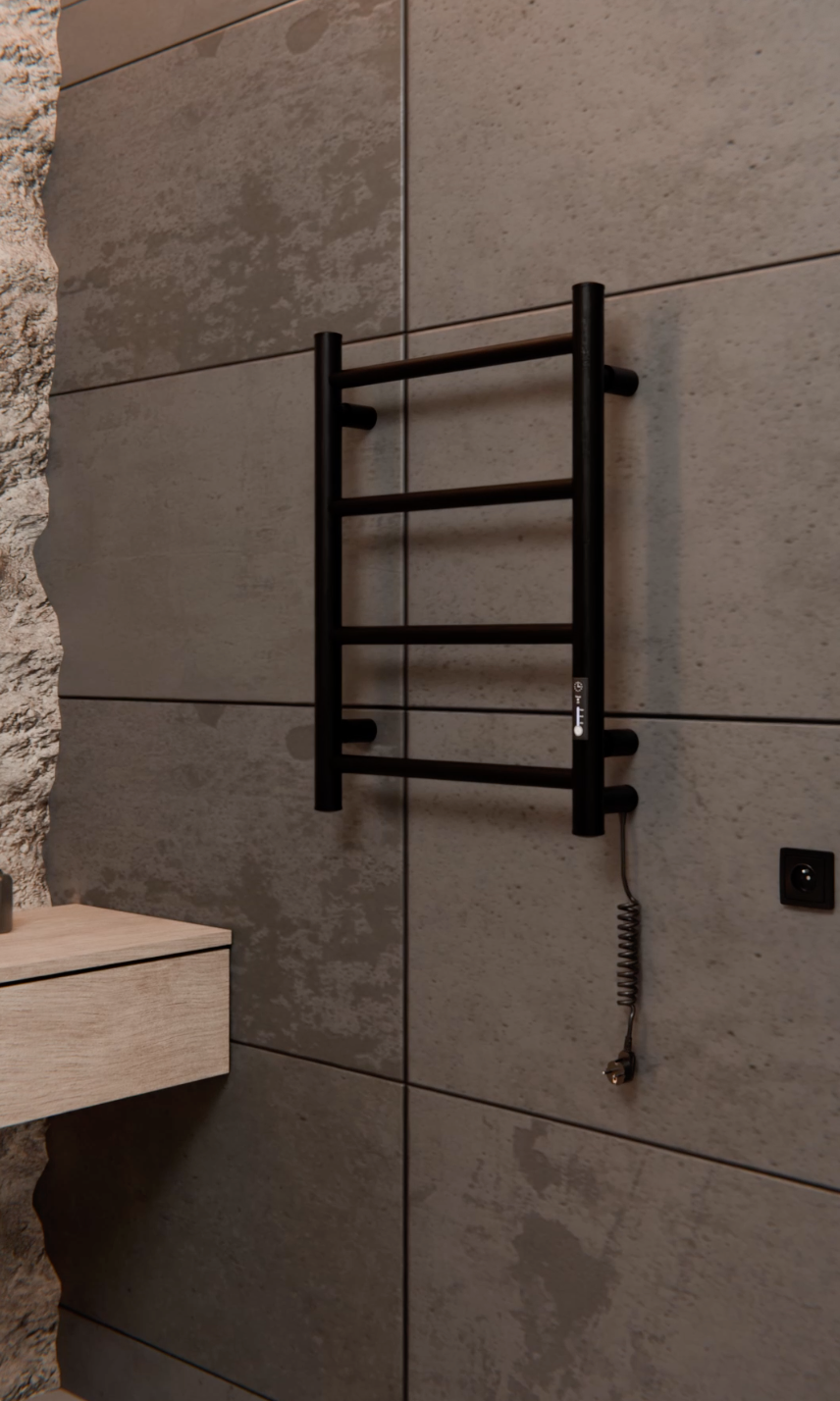 Siguiendo las tendencias mundiales en diseño de interiores de baños, le presentamos un radiador toallero eléctrico con acabado en negro mate. Decisión de diseño perfecta para los clientes que están totalmente enamorados de los colores industriales y las formas concisas del metal.