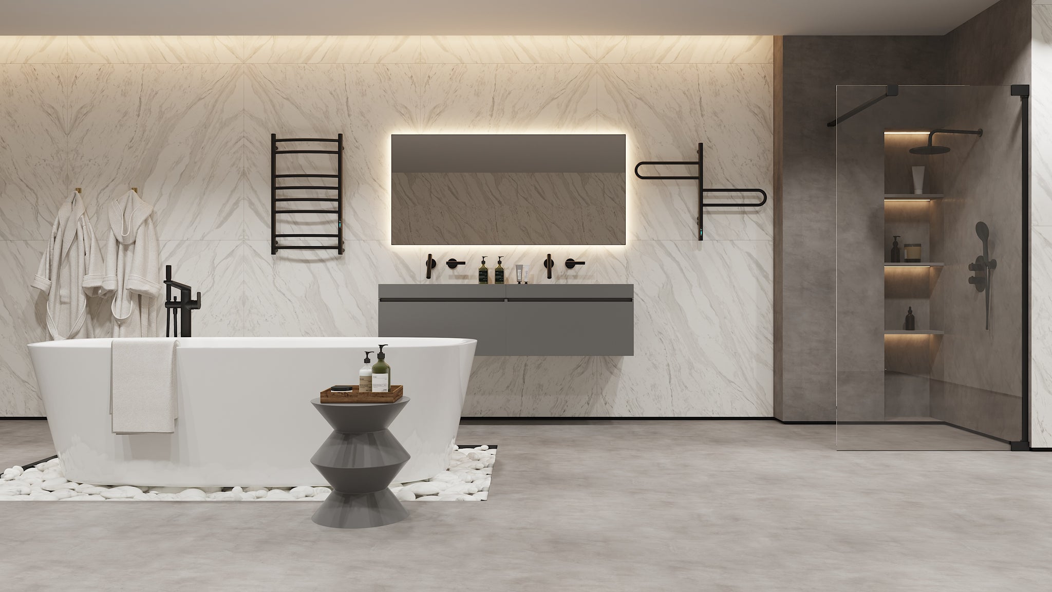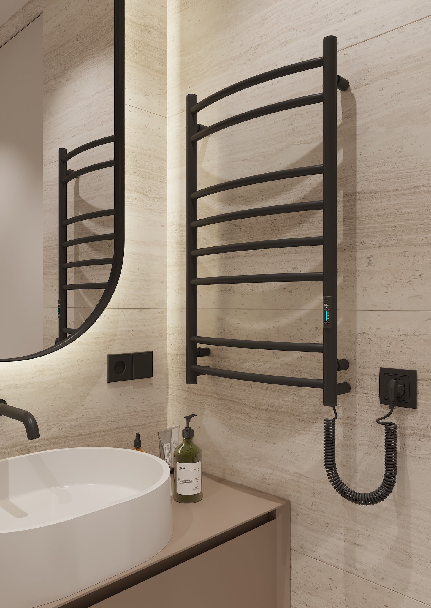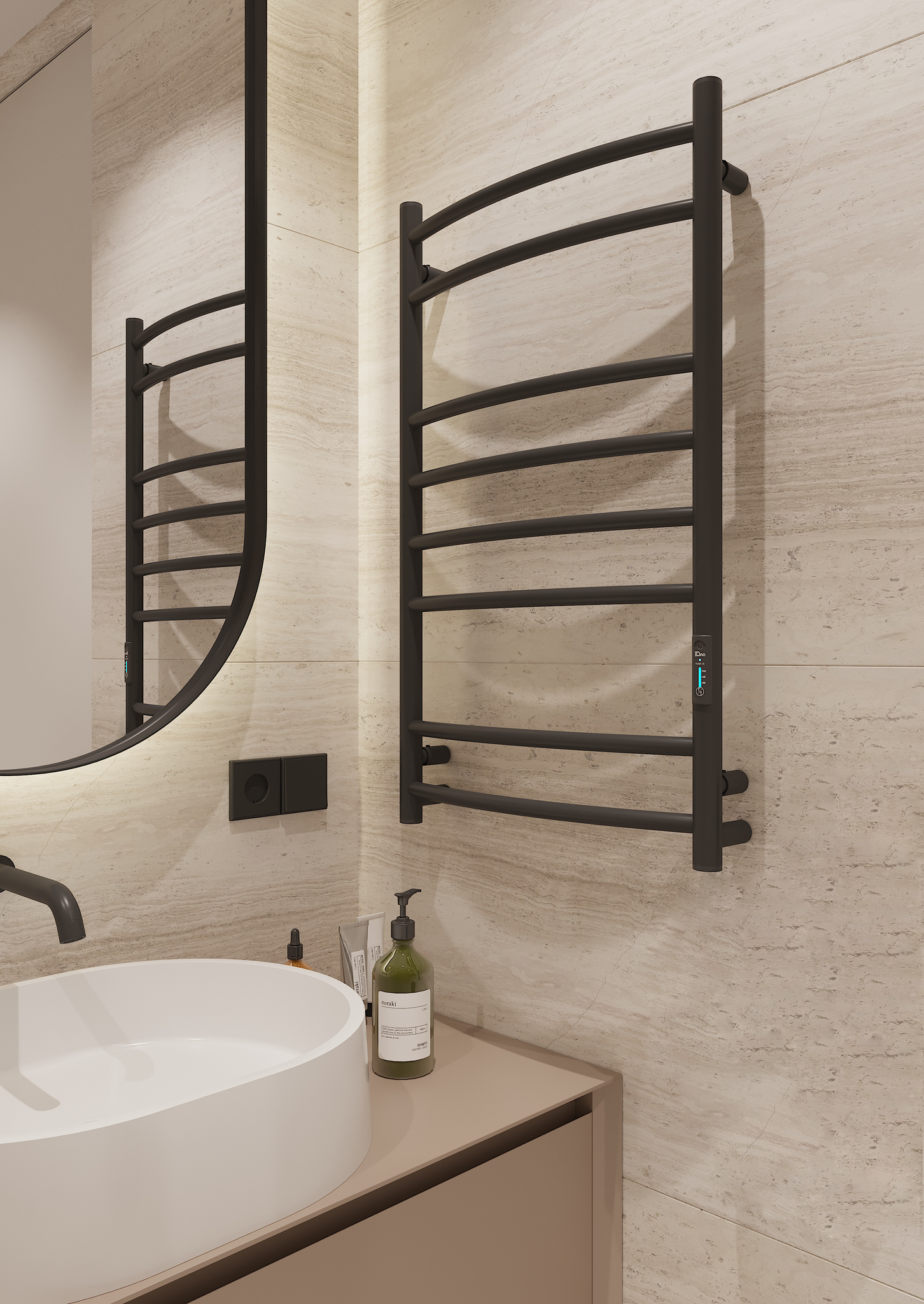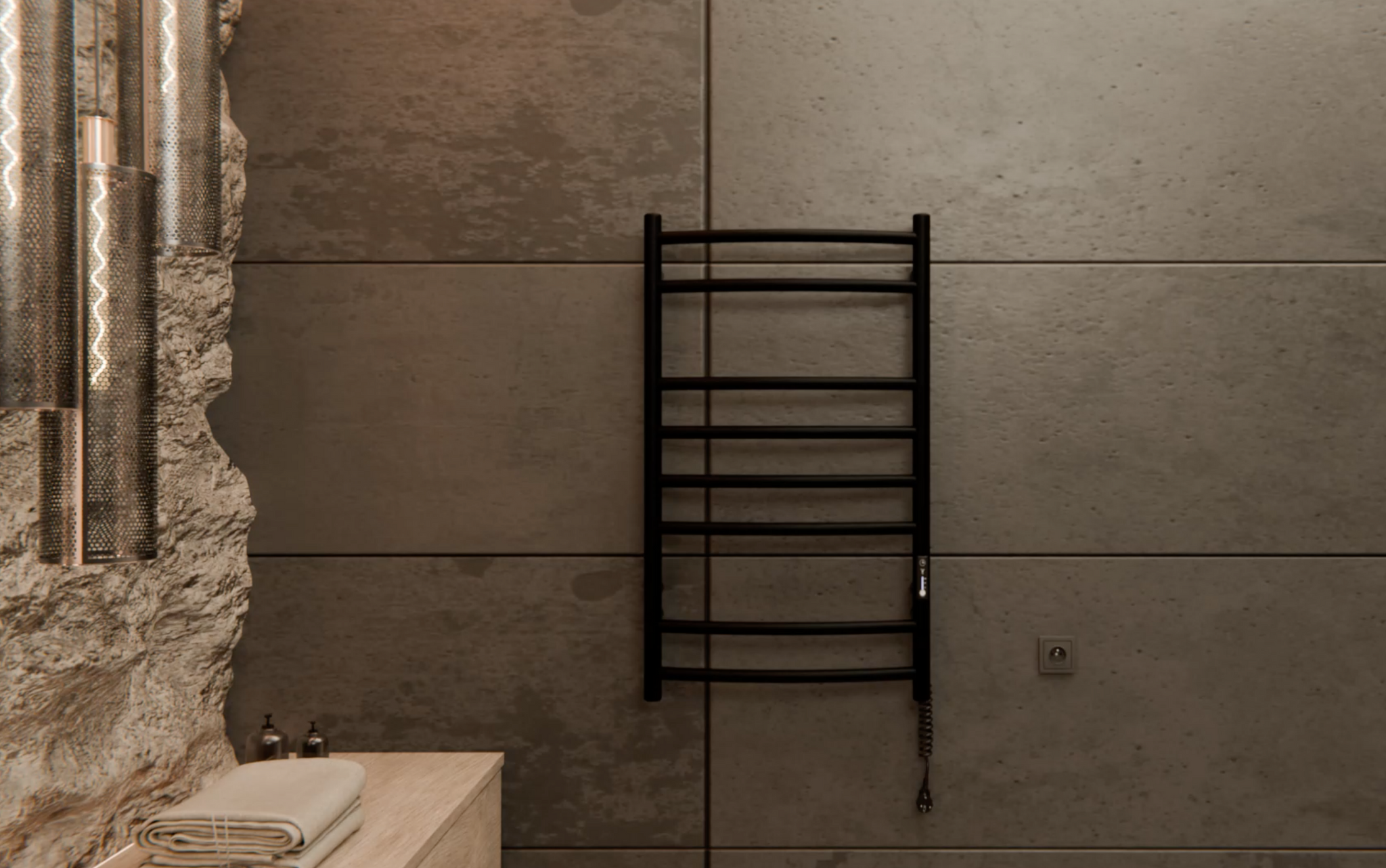 Siguiendo las tendencias mundiales en diseño de interiores de baños, le presentamos un toallero eléctrico con acabado negro mate. Una decisión de diseño perfecta para los clientes totalmente enamorados de los colores industriales y las formas concisas del metal.